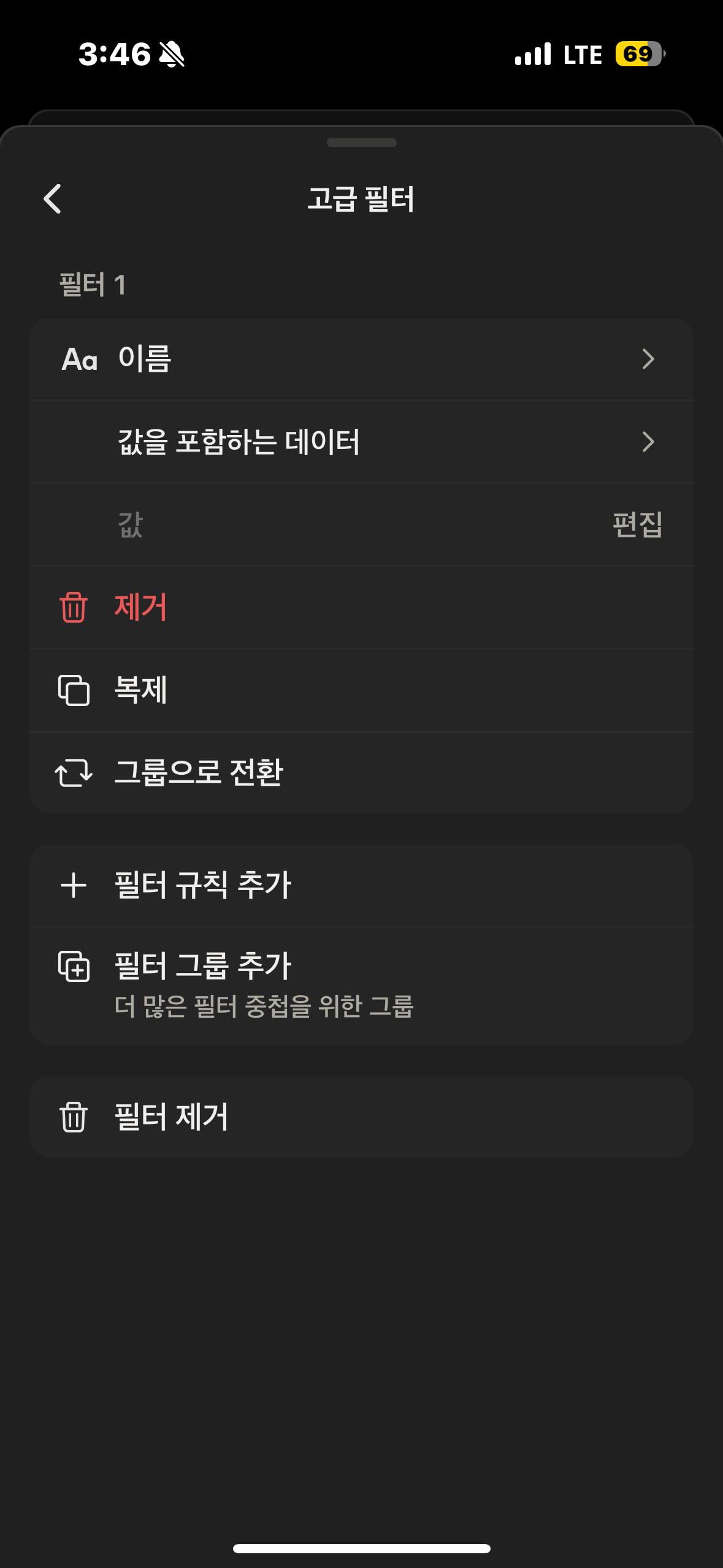 고급 필터 안에 또 하위 필터를 넣을 수 있어요. 최대 3단계까지 가능합니다.